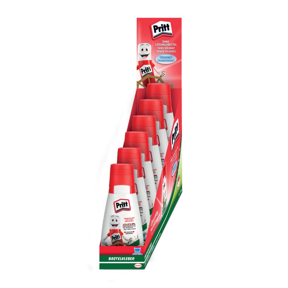 Pritt Bastelkleber. Ohne Lösungsmittel. Trocknet transparent . Ermöglicht sauberes, schnelles Verkleben von Papier, Pappe, Filz, Kork etc.. Ideal für Bastelarbeiten. Hohe Anfangshaftung. Auswaschbar bei 20°C. Behälterart/-inhalt: 1x100g Flasche .