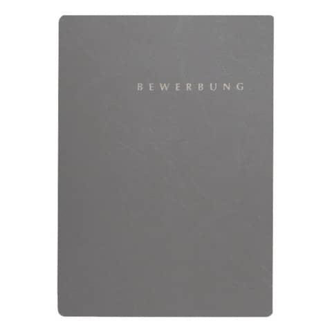 Bewerbungsmappe Select. für Dokumente im Format A4. Basic. 3-teilig. grau. aus hochwertigem Karton. mit praktischen Halbmondstanzungen und stabiler Klemmschiene. silbernem Schriftzug 'Bewerbung' auf dem Vorderdeckel.
