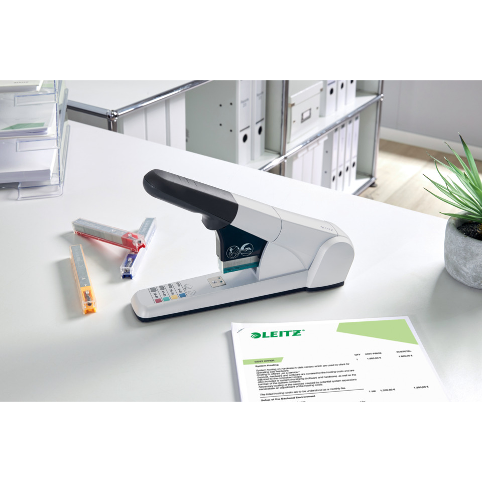 Produktinformationen "Blockhefter, 80 Blatt, Einlegetiefe 8 mm, silber LEITZ 5551-00-84"