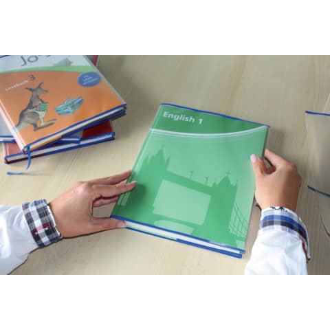 Rundum durchsichtige Fertigeinbände aus kräftiger Polypropylen-Folie mit stabilem, geschweißten Kantenschutz. Mit zweiter Lasche für perfekten Halt. Der perfekte Schutz für alle Bücher, verlängert die Lebensdauer. Mit Beschriftungsetikett.