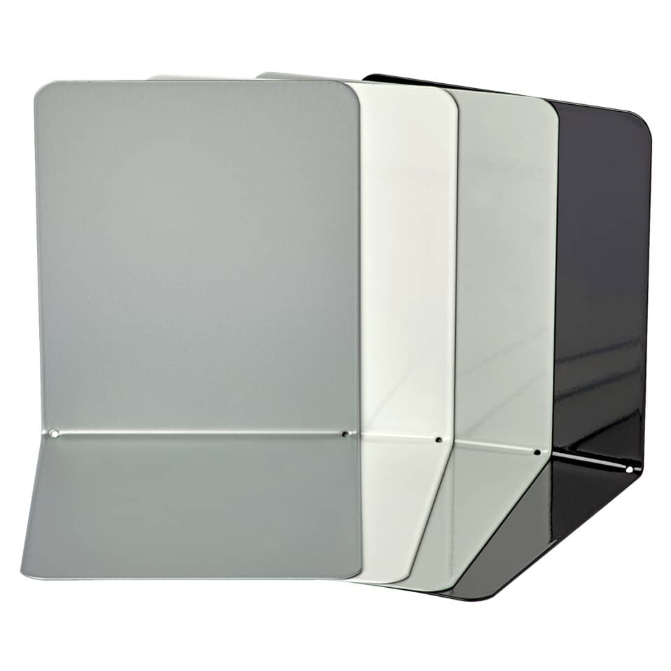 Buchstützen aus Metall, breit. Ausführung: metall, pulverbeschichtet, 0,8 mm. Belastbarkeit: hoch. 1 Paar. Sehr stabil. Kratzfeste, glatte Kanten. Hochwertige Oberfläche. Größe (B x H x T): 120 x 140 x 140 mm. Garantie gewährt. Garantiedauer: 3 Jahre. Farbe: silber.