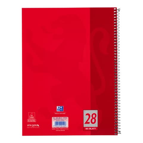 Eigenschaften "Collegeblock, A4+, 80 Blatt, Lin.28, kariert, rot OXFORD 100050361"