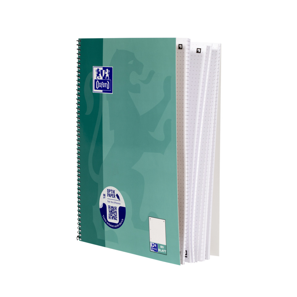 Eigenschaften "Collegeblock, A4+, 80 Blatt, punktkariert, grünblau OXFORD 400132378"