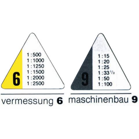 Eigenschaften "Dreikantmaßstab, weißer Kunststoff, 3 farbige Hohlkehlen, 30 cm, Teilung berufsschule 2 RUMOLD 150/2/30"