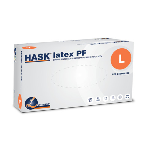 Eigenschaften "Einmalhandschuhe Latex, Gr.L, 100 Stück, weiß HASK 248004210"