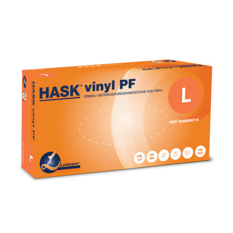 Eigenschaften "Einmalhandschuhe Vinyl, Gr.L, 100 Stück, weiß HASK 248000310"