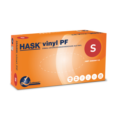 Eigenschaften "Einmalhandschuhe Vinyl, Gr.S, 100 Stück, weiß HASK 248000110"