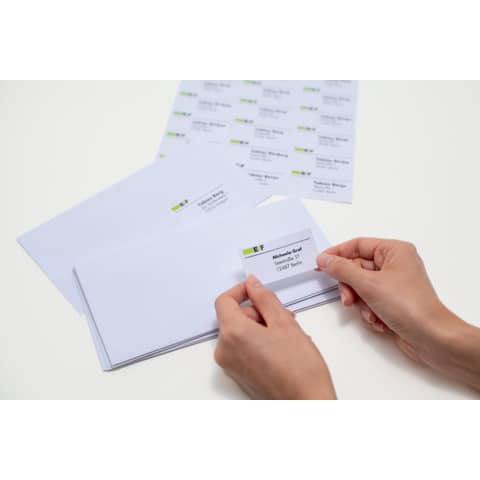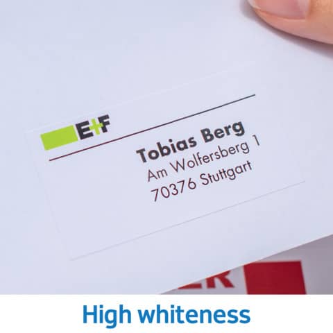 Selbstklebende Etiketten auf A4-Blättern, permanent haftend. Perfekt für alle Laser- und Inkjetdrucker, Kopierer, Farblaserdrucker und Farbkopierer. Garantiert staufrei und high-speed-fähig durch extra starken Spezialverbund, Top-Planlage und Rundum-Sicherheitskante. Problemloser Druckerdurchlauf für Laserdrucker und Inkjetdrucker getestet und bestätigt durch den TÜV SÜD. Hoher Weißegrad und gleichmä ßige Oberfläche für beste Druckergebnisse in Schwarz und Farbe. Spürbar dicker: extra starke Etiketten, einfaches Aufkleben. Besonders schnell und sicher haftend, auch auf kühlen und feuchten Oberflächen. Umweltschonend und nachhaltig: chlorfrei gebleicht, FSC® Mix Credit-zertifiziert, lösemittelfreier Haftkleber. Etiketten sind 100 % recyclingfähig mit dem Altpapier, Verpackung aus Recyclingkarton.