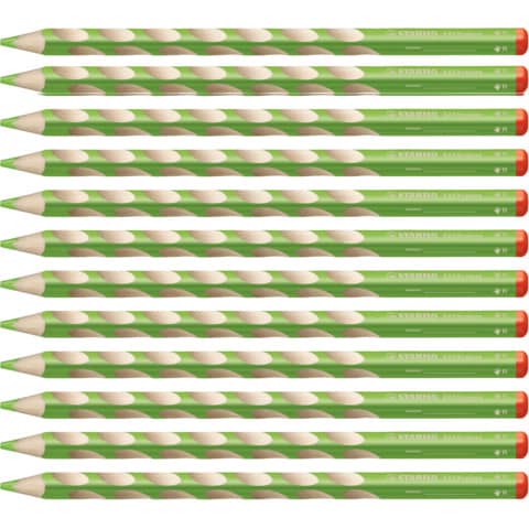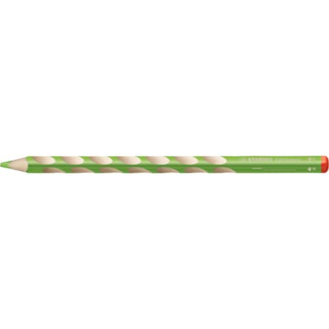 Ergonomischer Buntstift STABILO® EASYcolors. Ausführung der Schaftform: Dreikantform. Farbe des Schaftes: in Malfarbe. Material des Schaftes: PEFC Lindenholz. Schaft lackiert. Größe ( Ø x L): 9 x 175 mm. Für Rechtshänder - sichtbar durch roten Farbcode am Stiftende. Dreikantform und rutschfeste Griffmulden für eine entspannte Handhaltung. In Holz aus nachhaltiger Waldwirtschaft. Mit Namensfeld. Stärke der Mine: 4,2 mm. Schreibfarbe der Mine: gelbgrün.