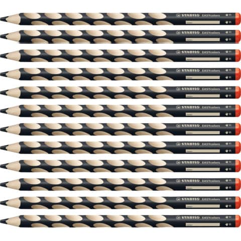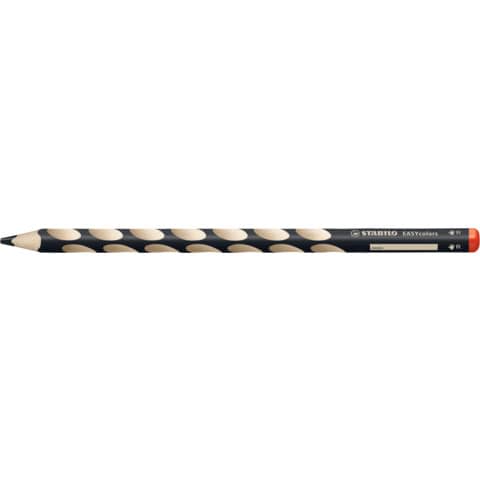 Ergonomischer Buntstift STABILO® EASYcolors. Ausführung der Schaftform: Dreikantform. Farbe des Schaftes: in Malfarbe. Material des Schaftes: PEFC Lindenholz. Schaft lackiert. Größe ( Ø x L): 9 x 175 mm. Für Rechtshänder - sichtbar durch roten Farbcode am Stiftende. Dreikantform und rutschfeste Griffmulden für eine entspannte Handhaltung. In Holz aus nachhaltiger Waldwirtschaft. Mit Namensfeld. Stärke der Mine: 4,2 mm. Schreibfarbe der Mine: schwarz.