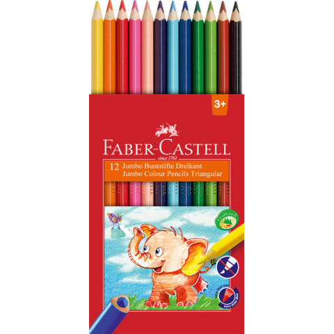Produktinformationen "Farbstifte Jumbo dreikant, 12 Stück, sortiert FABER CASTELL 116501"