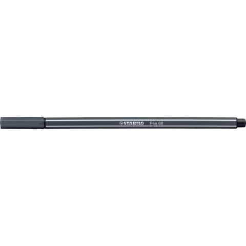 Premium-Filzstift STABILO® Pen 68, Material des Schaftes: Kunststoff, Farbe des Schaftes: Schreibfarbe mit weißen Kantenstreifen, Ausführung: , Rundspitze, Art der Schreibflüssigkeit: Tinte auf Wasserbasis, geruchsneutral, farbintensiv - für kräftige Linien und deckende Flächen. Hohe Brillanz und Leuchtkraft. Bis zu 24 Stunden Austrocknungsschutz ohne Kappe. Die robuste M-Spitze sorgt für gleichmäßige Farbabgabe. Ventilierte Kappe - am Stiftende aufsteckbar, Strichstärke: 1 mm, Schreibfarbe von Schreibgeräten: schwarzgrau, Zertifikate und Zulassungen: CE-Zeichen.