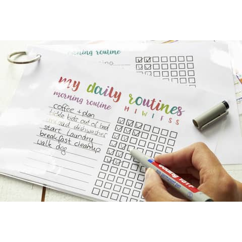 Non-permanenter Folienschreiber zum feinen Schreiben auf fast allen geschlossenen Kunststoffoberflächen. Die Beschriftung ist mit Wasser korrigierbar. Die Rundspitze verfügt über eine Strichbreite von 0,6 mm. Die Tinte des non-permanent Folienschreibers ist wischfest und schnelltrocknend.