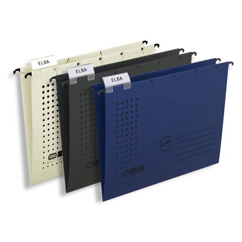Exklusiver 240g/qm starker Canson® Karton verhindert das Ausreißen des Kartons bei intensivem Gebrauch. Für Lose-Blatt-Ablage, seitlich offen. Schlitzstanzung für Einhänge-Hefstreifen. Komfort-Sichtreiter mit aufklappbarer Rückwand und auswechselbarem Beschriftungsschildchen. Schlitzstanzung für Einhängeheftstreifen 27 592. Extrem steife Metallhängeschienen mit pulverbeschichteten Enden. Größe: 318 x 6 x 240 mm (B x T x H). Beschriftungsmöglichkeit mit ELBA print. Für A4. Umweltzeichen "Der Blaue Engel" und "Paper by Nature".