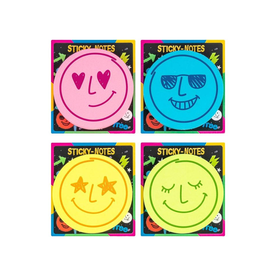 Stay positive! Diese Sticky Notes mit coolen Neon-Gesichtern sind praktisch und verbreiten gute Laune. Perfekt für kurze Notizen, Geburtstagsgrüße oder einfach, um jemandem ein Lächeln zu schenken. Blattgröße: Ø ca. 6,5 cm. Erhältlich in 4 verschiedenen Varianten: gelb, pink, blau, grün