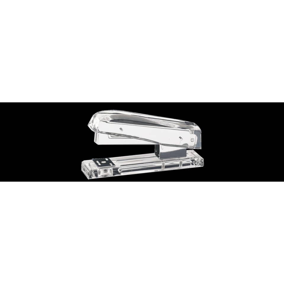 Acryl-Heftgerät, Werkstoff: Acryl. Das anspruchsvolle Fertigungsverfahren sichert lange Lebensdauer und hohe Stabilität. Inklusive Haftnoppen. Ausführung Heftgerät: Ausführung der Heftungsart: fest/lösbar, Heftleistung: 15 Blatt, Oberlademechanik, Farbe: glasklar. Typbezeichnung der Heftklammern: 24/6, 26/6. Ausführung der Lieferzusammenstellung: Heftgerät