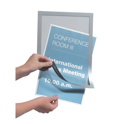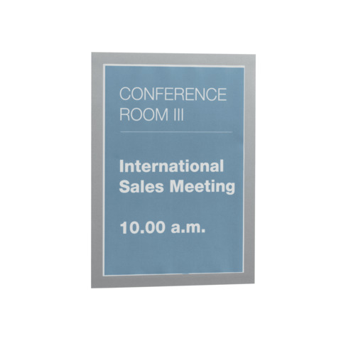 Info-Rahmen DURAFRAME® A4. Beschriftungsschild auswechselbar. Selbstklebend, magnetische Vorderseite, einfaches Wiederablösen und neu Aufkleben möglich, verwendbar im Hoch- und Querformat. Größe (B x H): 322 x 236 mm. Farbe: silber. Beutel à 2 Stück.
