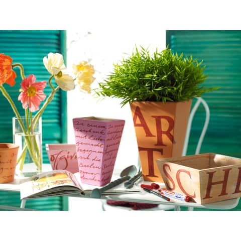 Marker mit Kalligrafiespitze für ein schönes Schreiben auch auf porösen Oberflächen, besonders Terrakotta, Holz, Papier oder Leinwand. Die flexible Kalligrafie-Spitze verfügt über eine Strichbreite von 1-5 mm. Die Pigmenttinte auf Wasserbasis trocknet schnell, ist extrem lichtbeständig, permanent und witterungsbeständig.