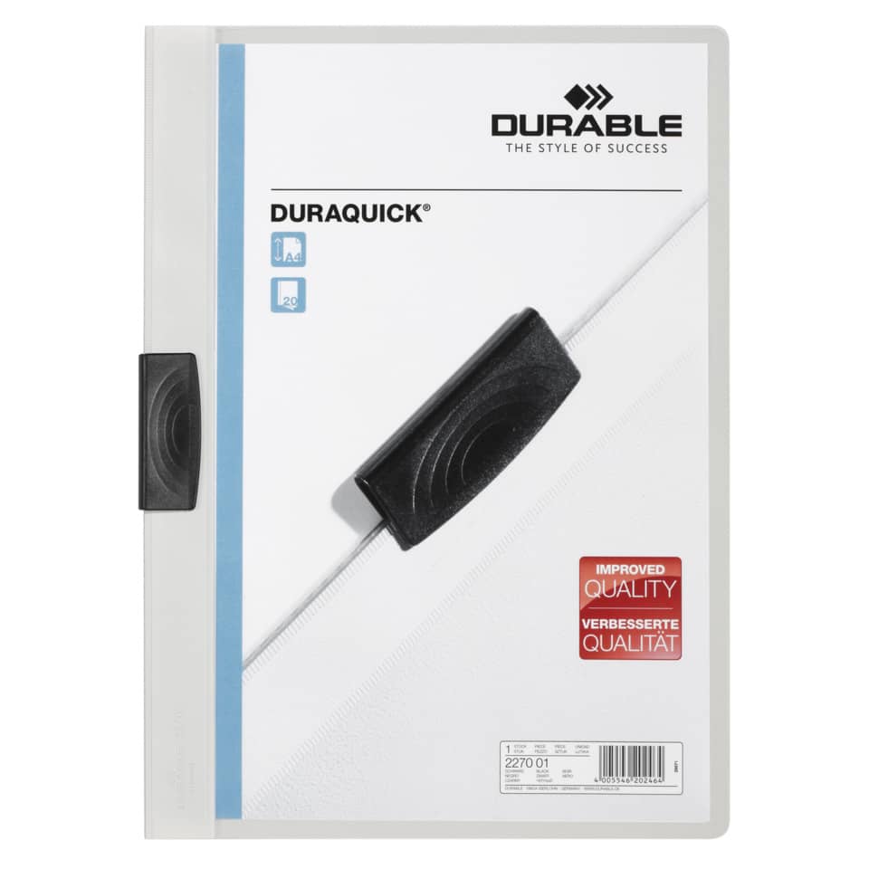 Eigenschaften "Klemm-Mappe DURAQUICK®, Weich-/Hartfolie, 20 Blatt, transparent/weiß DURABLE 2270 02"