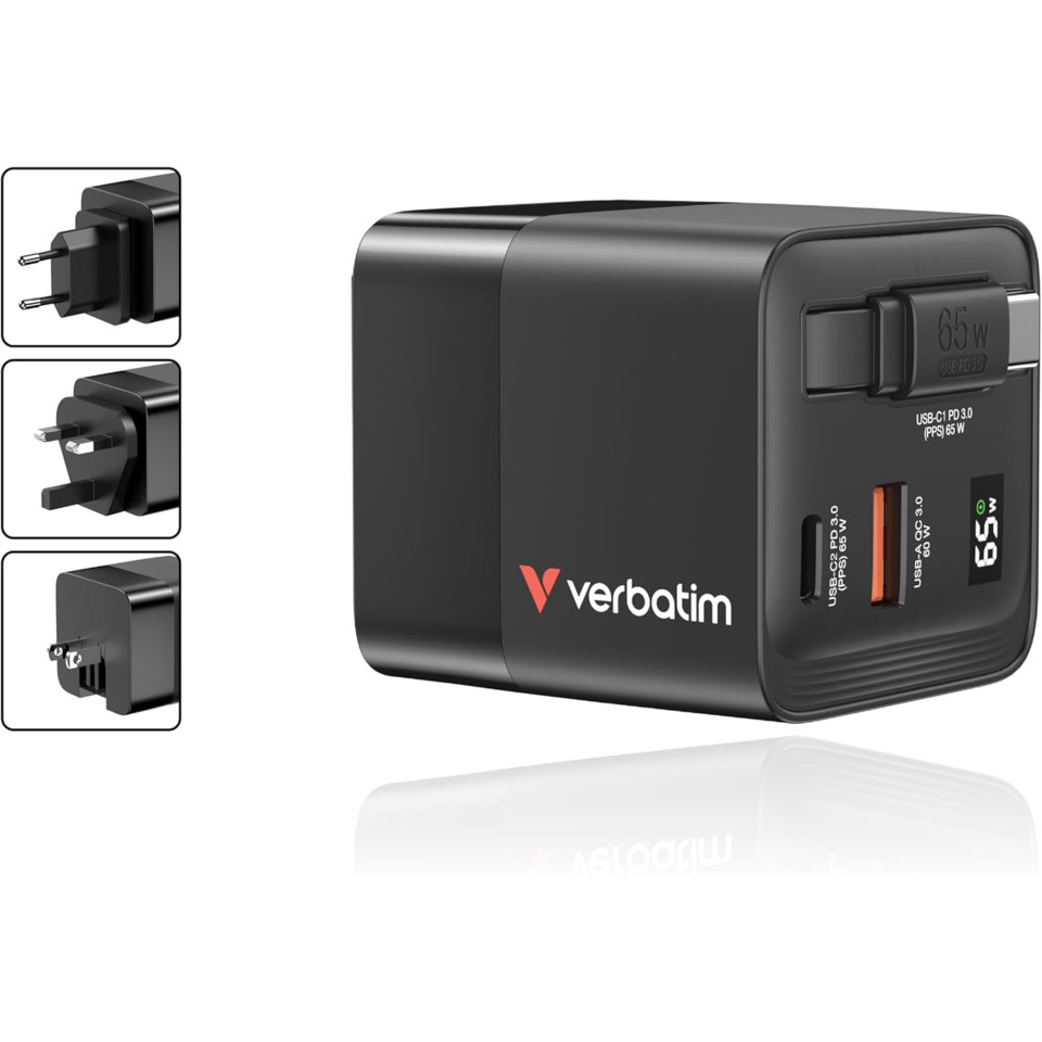 Produktinformationen "Ladegerät Charger, 65W, 3-fach Kabeleinzug, schwarz VERBATIM 32217"