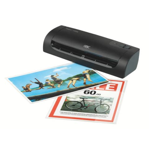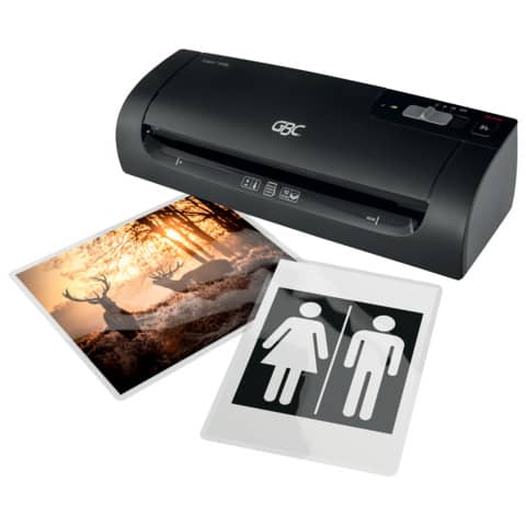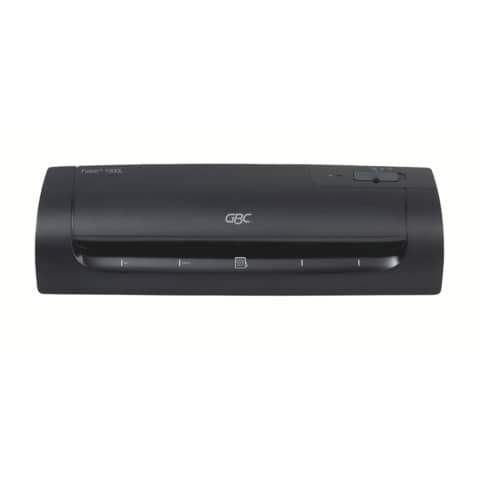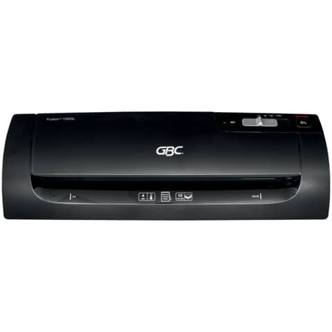 GBC Laminiergerät Fusion 1000L. Für Format A4. Mit optischer Bereitschaftsanzeige. Mit 2 Laufrollen. Folienstärke: 75 Micron. Geschwindigkeit: 300 mm/Minute (60 Sekunden für A4 80 mic). Vorheizzeit: 4 Minuten. Temperatur: fest, Kaltlaminieren möglich. Maximale Breite: 241 mm. Maximale Laminierdicke: 0,6 mm. Gewicht: 1,4 kg. Format: 370 x 80 x 90 mm. 2 Jahre Garantie. Farbe: schwarz.