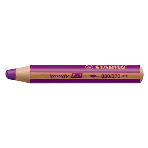 Multitalent-Stift STABILO® woody 3 in 1. Ausführung der Schaftform: rund. Wegen seiner dicken Form ideal für Kinderhände: der Stift ist gut zu greifen. Farbe des Schaftes: in Minenfarbe. Schaft lackiert. Größe ( Ø x L): 15 x 100 mm. Buntstift, Wassermalfarbe und Wachsmalstift in einem. Nahezu bruchsichere Mine. Ergiebige Farben. Satter, samtweicher Abstrich. Hohe Deckkraft und Farbintensität, auch auf dunklen Papieren. Auch für glatte Oberflächen wie Glas, Metall, Leder etc. Stärke der Mine: 10 mm. Schreibfarbe der Mine: erika**.