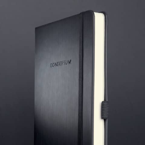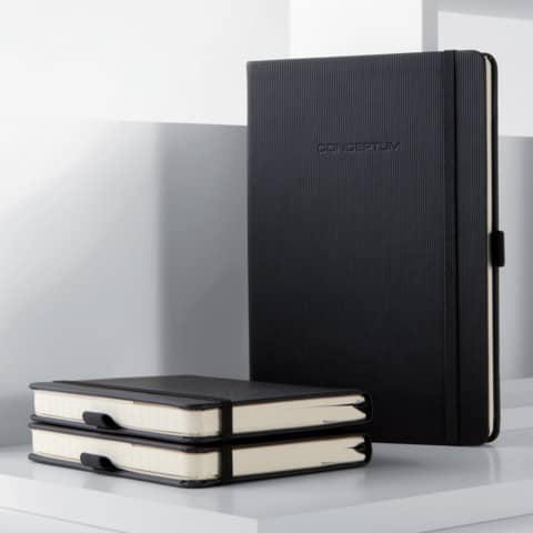 Entdecken Sie das beste Notizbuch, das Sie je hatten. Die Oberfläche mit der gerillten Softwave-Struktur sorgt für eine angenehme Haptik und macht das Conceptum Notizbuch zum eleganten Begleiter im Business wie auch privat. Notizen effizient organisiert und stets zur Hand - mit dem stilsicheren Notizbuch liniert im Format ca. A5 (14,8 x 21,3 cm) mit 194 Seiten (davon 20 Blätter perforiert). Der stabile Hardcover-Einband in schwarz garantiert Stabilität beim Schreiben und der Gummibandverschluss hält alles sicher verwahrt. Die vielen praktischen Funktionen werden Sie überzeugen: z. B. haben Sie mit der dehnbaren Stiftschlaufe immer einen passenden Stift zur Hand, Notizen können Sie dank perforierter Notizblätter einfach weitergeben. Organisieren Sie Ihre Einträge übersichtlich, indem Sie die Seitennummerierung in das Inhaltsverzeichnis übertragen. Absolut hochwertig in Qualität und Design und somit extrem langlebig - dieses Notizbuch wird Sie begeistern.
