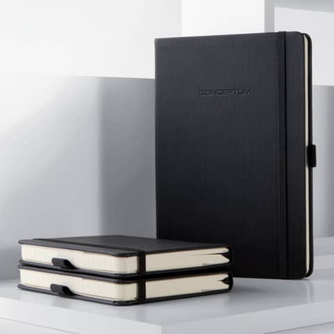 Mit diesem schwarzen Notizbuch aus der CONCEPTUM® Reihe sind Sie nicht nur im Büro gut gerüstet. In klassischem Schwarz ist es edel und elegant. Das praktische Format A5 bietet genug Platz für persönliche Notizen. Für Ihre Einträge stehen 194 karierte Seiten zur Verfügung. Dieses Notizbuch bietet Ihnen Design pur für Ihre Notizen. Optisch auf das Wesentliche reduziert, steht es für Klarheit auf ganzer Linie. Das Cover mit der außergewöhnlichen Softwave-Oberfläche ist fühlbar und sichtbar einzigartig. Der hochwertige Einband überzeugt durch die besondere Struktur und die angenehme Haptik. In puristischem Schwarz ist es für den Business-Look perfekt geeignet - ob im Meeting, unterwegs oder im Büro. Dabei vereint es mehrfach ausgezeichnetes Design und beste Verarbeitungsqualität mit hoher Funktionalität. CONCEPTUM® Notizbücher mit 194 chamoisfarbenen Seiten sind mit vielen praktischen Funktionen ausgestattet. Inhaltsverzeichnis, fortlaufend nummerierte Seiten, 2 Zeichenbänder, Gummibandverschluss, Stiftschlaufe, Quickpocket und Archivtasche mit zwei Kartenfächern helfen bei der perfekten Organisation der Notizen. Ein weiteres Extra sind die 20 perforierten Blätter zum Heraustrennen. Sie machen das Notizbuch zusätzlich zum Notizblock. Mit CONCEPTUM® sind Sie immer hervorragend organisiert.