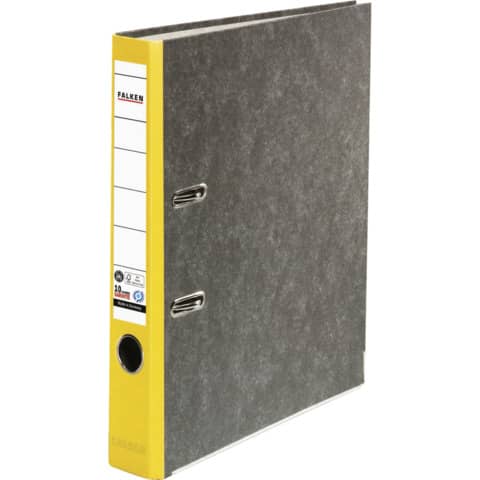 Eigenschaften "Ordner Wolkenmarmor Recycling, A4, 50mm, schwarz/gelb FALKEN 80023625"