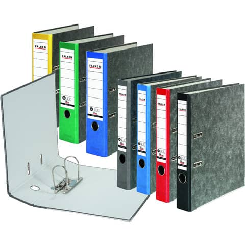 Recycling-Wolkenmarmor-Ordner A4, farbiger Rücken 50mm Schlitzordner im klassischen Wolkenmarmor-Design mit schwarzem oder farbigem Rücken, stabiler Pappkern, griffig genarbter Papierbezug, mit verstärkter Qualitätshebelmechanik, Kantenschutz, FSC zertifiziert Die Recycling Schlitzordner im klassischen Wolkenmarmor-Design sind perfekt für alle umweltbewussten Menschen die Wert auf eine hohe Qualität legen. Sie sind sowohl einzeln als auch im praktischen 10er oder 20er Pack, in unterschiedlichen Rückenfarben erhältlich. Sie sind äußerst stabil und standfest durch einen stabilen Pappkern und sind mit einem Kantenschutz ausgestattet. Unsere Recycling Ordner besitzen sowohl die bewährte, verstärkte Qualitätshebelmechanik als auch ein bereits aufgeklebtes Rückenschild. Ein Griffloch ermöglicht Ihnen den schnellen Zugriff auf den Ordner. Alle Recycling Ordner werden aus umweltfreundlichen Rohstoffen in Deutschland produziert und sind sowohl FSC als auch Blauer Engel zertifiziert.