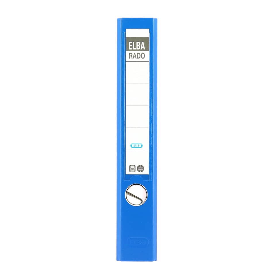 Extrem stabiler Pappkern. Vollfarbiger und beschichteter Papiereinband. Schmutz- und feuchtigkeitsabweisend. Sichttasche am Rücken mit auswechselbarem Rückenschild. Für ca. 280 DIN A4-Blätter. Ersatzrückenschild: 04 214. Beschriftungsmöglichkeit mit ELBA print. Ordner mit Qualität in ihrer ursprünglichsten Form. Hochwertige ELBA Präzisionsmechanik, Griffloch aus Alu und Kantenschutz sowie zwei rado-Ösen für ein platzsparendes und standfestes Aufstellen des Ordners. Für DIN A4. Größe: 285 x 318 mm (B x H). Rückenbreite: 50 mm.