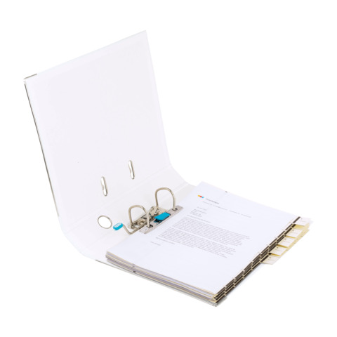 Formstabile Spezialpappe. Einband außen mit PP, innen mit Papier kaschiert. Sichttasche am Rücken mit auswechselbarem Rückenschild. Für ca. 280 DIN A4-Blätter. Ordner mit präzise schließender Hebelmechanik und Niederhalter. Mit Kantenschutz, Greifloch und rado-Ösen. Rückenbreite: 50 mm. Größe: 285 x 318 mm (B x H) für DIN A4. Ersatzrückenschild: 04 264. Beschriftungsmöglichkeit mit ELBA print.