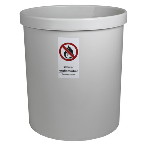 Papierkorb aus Spezialkunststoff, schwer entflammbar, selbstverlöschend. Größe: Ø 250/290mm, 330mm hoch. Volumen: 18 Liter.