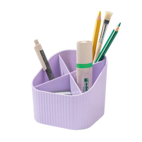 Schreibtischköcher HAN Re-X-LOOP. Nachhaltiger Schreibtischköcher aus qualitativ hochwertigem, recyceltem Öko-Kunststoff, im formschönen Design sorgt für Ordnung auf dem Schreibtisch. Die 4 unterschiedlich hohen Fächer bieten viel Platz für Stifte, Pinsel und viele weitere Utensilien. Ob für das Büro oder Zuhause. Der HAN Re-X-LOOP ist unempfindlich, stabil und langlebig. Der Schreibtischköcher HAN Re-X-LOOP ist umweltfreundlich und hilft somit wertvolle Ressourcen zu sparen. Made in Germany. Außenmaße (B x T x H): 111 x 111 x 105 mm. Material: 100% PIR-Kunststoff Rezyklat (PP). Farbe: pastelllila.
