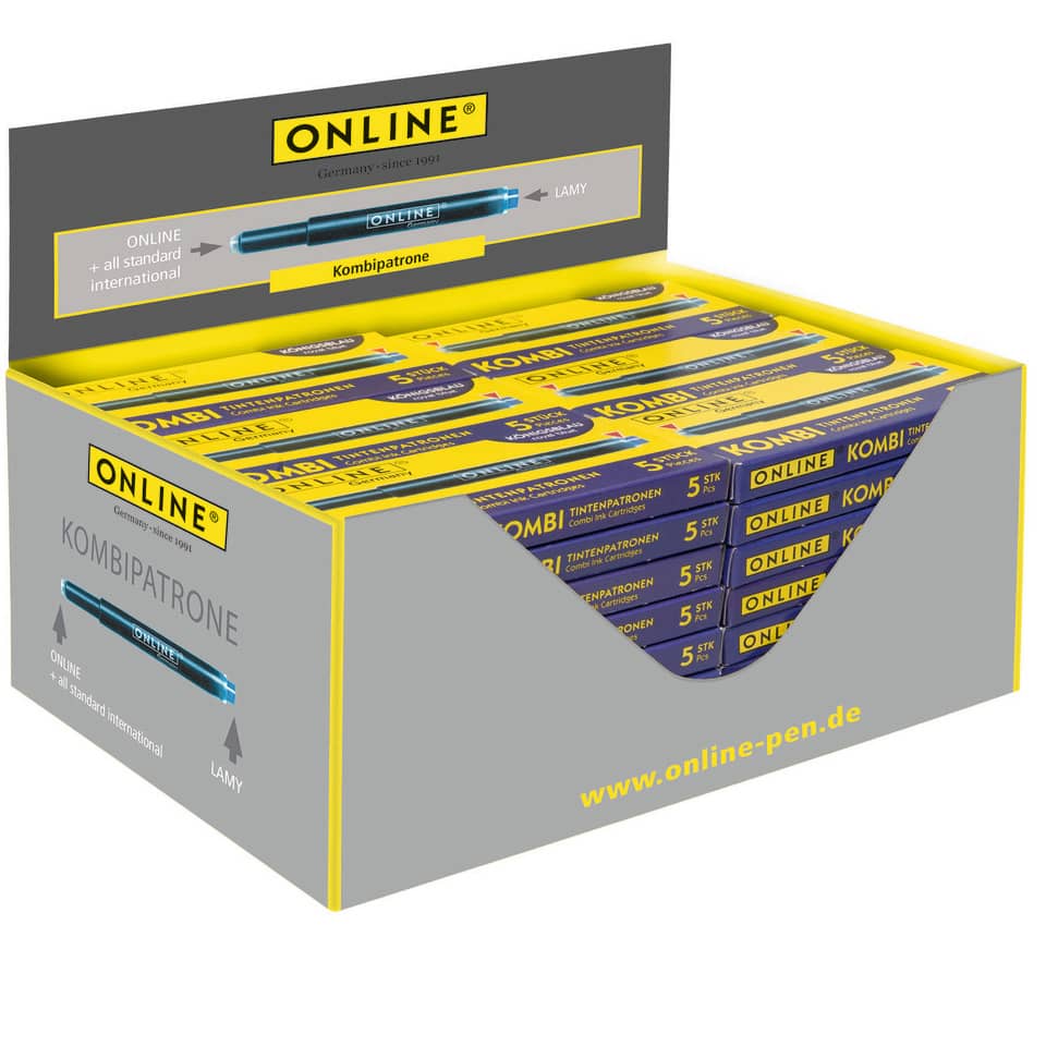 ONLINE Kombipatrone passt immer:dünne Seite für ONLINE + Standard-Füllersysteme, dicke Seite für LAMY-Füller,