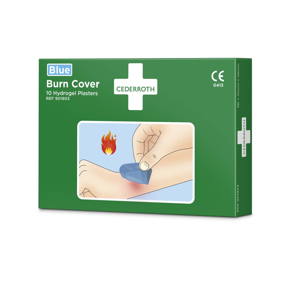 Das Burn Cover Hydrogelpflaster schützt die Wunde kleinerer Brandverletzungen und sorgt für Linderung. Mit seiner blauen Farbe ist es zum Einsatz in Lebensmittelbetrieben geeignet. Die Wundauflage besteht aus Hydrogel, das nicht an der Wunde haftet. Wasserdicht und steril. Vor der Wundversorgung mit Burn Cover die Brandwunde mindestens 20 Minuten lang kühlen, beispielsweise mit Cederroth Burn Gel oder durch Spülen mit lauwarmem Wasser. 10 Pflaster/Verpackung (74 x 45 mm).