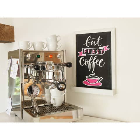 Kreidemarker für die nicht-permanente, extrabreite Gestaltung, Dekoration und Beschriftung von geschlossenen Oberflächen, z. B. Fenster, dunkle Tafeln, Glas, plexiglas® und Spiegel. Die Keilspitze verfügt über eine Strichbreite von 4-15 mm. Die deckende, geruchsneutrale Flüssigkreide auf Wasserbasis kann von fast allen geschlossenen Oberflächen mit einem feuchten Tuch abgewischt werden.