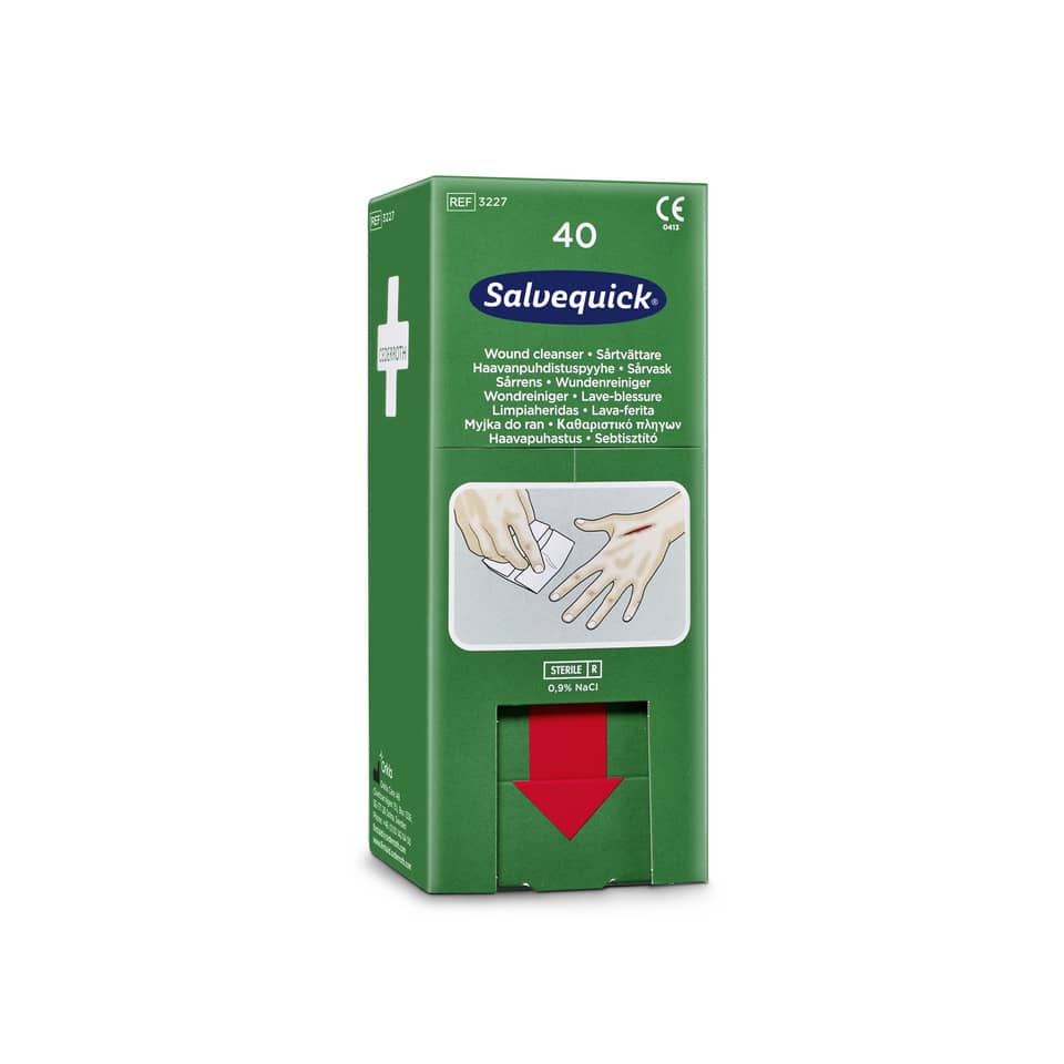 Der Salvequick Wundreiniger ist der praktische Ersatz für Watte und Wundreinigerlösung. Inhalt: 40 x Salvequick Wundreiniger mit 0,9 % Kochsalzlösung. Steril, einzeln verpackt. Passend für die Pflasterspender Plus.